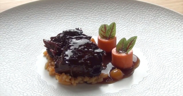 Haal vervolgens de kalfswangen en de groentes uit. Kalfswang wordt beschouwd als kalfsvlees. 300 ml kalfsfond Roomboter om in te bakken Peper en zout Smelt de roomboter in een braadpan.