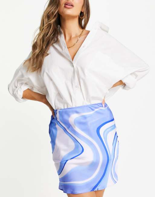 Asos Design Satin Mini Skirt In Blue Swirl Print Asos