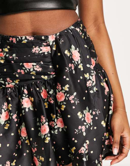 Asos Design Satin Mini Skirt With Drape In Floral Print Asos